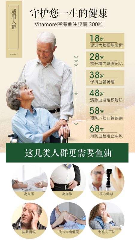 Vitamore是澳洲Nature’s Care旗下的品牌,大家比较知晓的Healthy Care、VitAustralia等品牌都属于该公司,不同品牌之间产品其实很相似,只是依不同销售渠道用不同品牌。这款欧米伽3深海鱼油软胶囊采自深海鱼类,营养丰富,作为鱼油的原料也更纯净,富含大量 Omega-3,可以清除血管内各种垃圾,保持血液活力,远离三高。