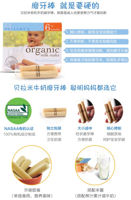 适合6个月大或以上的宝宝、帮助舒缓牙龈不适、特别加入铁、不添加糖、澳洲制造、澳洲有机认证(ACO)、小包包装保鲜