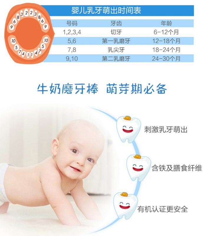 孩子出牙时,新牙长穿牙肉时所带来的压力和痛苦,做父母的感同身受。我们的有机牛奶饼干,可以在宝宝出牙期间缓解宝宝的不适。