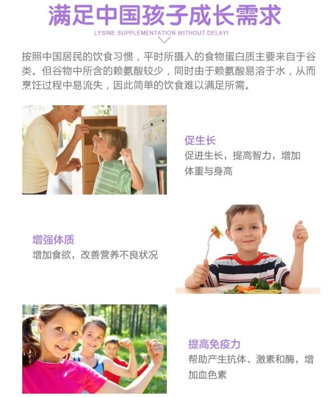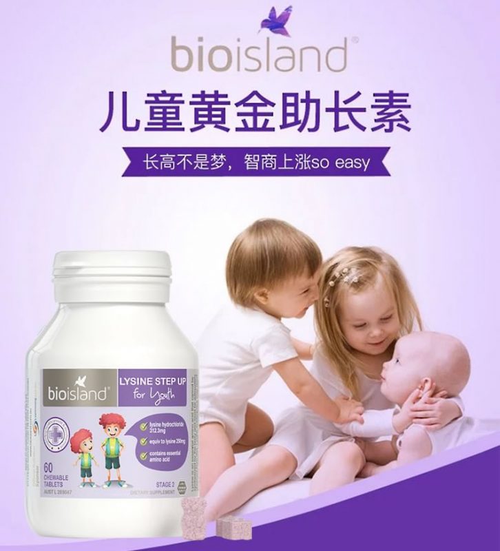 Bio Island赖氨酸儿童青少年助长素2段咀嚼片特别针对6-24岁青少年,包含了身体必需的赖氨酸,促进生长发育、增强体质。身体不能自己生成赖氨酸,必须通过饮食产生;赖氨酸同时还能帮助青少年健康成长并增强免疫系统功能。