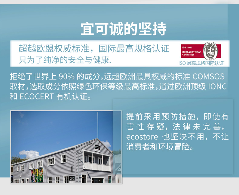 健康第一:ecostore将您与家人的健康放在第一位,我们的研发采用预防措施的哲学:凡是此化学物质是有害的、有害性仍存疑的或者不必要添加的,ecostore通通摒弃不用,只在消费者使用的产品添加安全的、健康的、有效的天然成分。