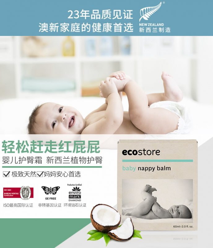 加入了新西兰独有的植物霍罗皮托活性精华(Active Horopito Extract)。霍罗皮托的树叶是新西兰人自古以来的神奇护肤秘方,常被当地民族毛利人用于处理肌肤问题。ecostore婴儿护臀膏萃取了Horopito树叶的精华,天然顺滑的护臀霜能有效针对宝贝屁屁的尿布疹(Nappy rash)、乳痂(Cradle cap)以及其它肌肤状况。有效滋养和保护宝贝娇嫩柔软的屁屁。