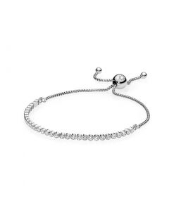 PANDORA为传统的网球手链赋予全新时尚质感,925银镀铑的材质,搭配以立方氧化锆石为装饰的时尚滑动式链扣,可根据您的手腕尺寸和喜好款式轻松调节。