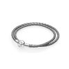 这款珍珠白双圈编织皮革手链,饰有925银链扣,可为您的造型增添一丝清新气质。为您的珠宝盒增添现代气息。