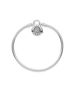 Pandora潘多拉 597092CZ PANDORA标志挂锁光滑银手链 Smooth Bracelet with PANDORA Signature Padlock