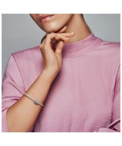 精巧桃心的飞扬曲线令人目眩神迷,Pandora徽标彰显灵动之美,这一款吸睛串饰点缀两排规则排列的合成立方氧化锆石,是为手链平添俏皮感的上佳之选。