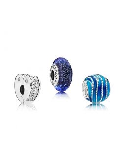 Pandora潘多拉 深邃之蓝手链套装 Iridescent Blue Swirls Set 含手链*1 串饰*3