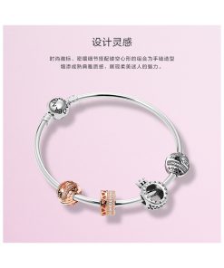 标志性的Pandora徽标和华丽皇冠O形造型尊贵典雅,搭配浪漫镂空桃心元素,突显妩媚动人的个性色彩。