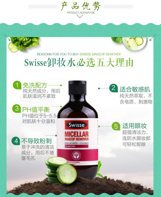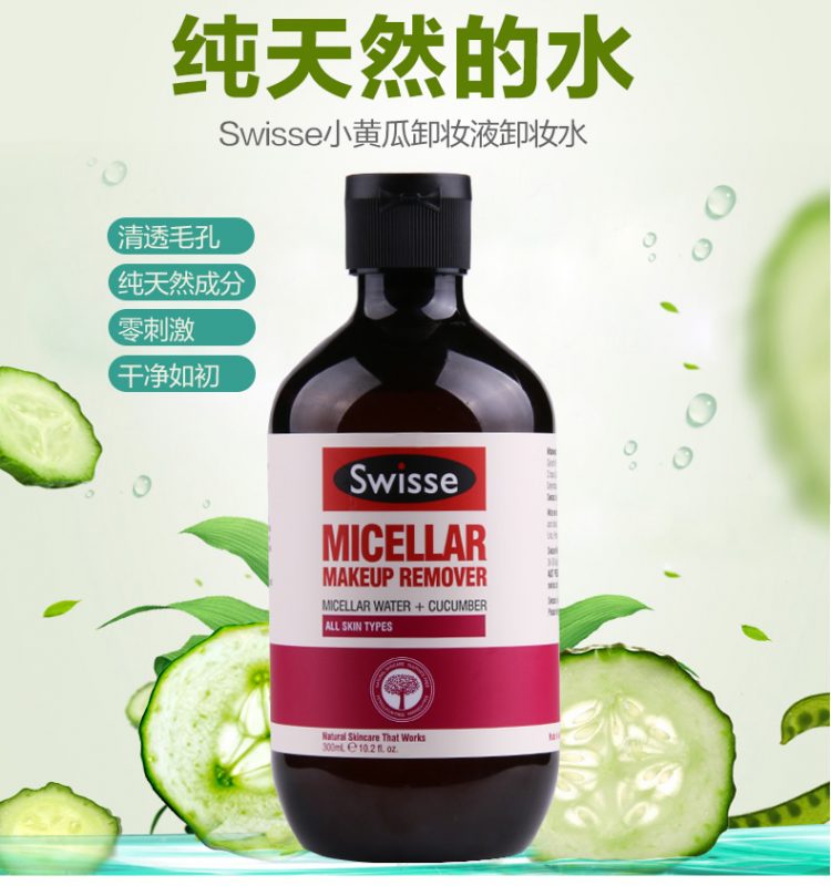 Swisse小黄瓜卸妆水是一种天然温和的免冲洗卸妆液。产品拥有奢华配方,可轻松去除即便是最顽固的防水彩妆的所有痕迹。
