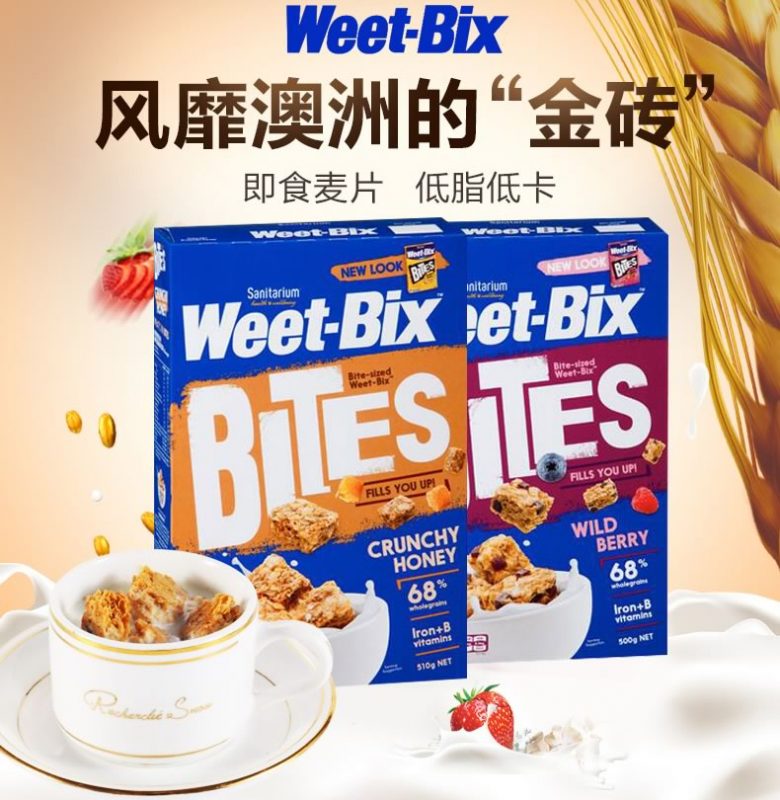 Weet-Bix Bites是Sanitarium旗下的产品,该公司有众多麦片产品是澳洲家庭非常常见的麦片品牌,基本款Weet-Bix即国内熟知的欢乐颂麦片,此款麦片为小块状,混合了水果后口感更佳,香脆营养直接食用或搭配牛奶酸奶都非常美味。
